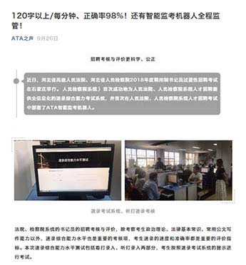 監考機器人已成功服務了多次大規??荚嚕諏ο蟀ā叭珖悇諑熉殬I資格考試”,“全國專利代理人資格考試”,“銀行專業人員職業資格考試”,“人民檢察院系統人才招聘考試”,以及“ACT(香港考點)”等等,廣受好評。