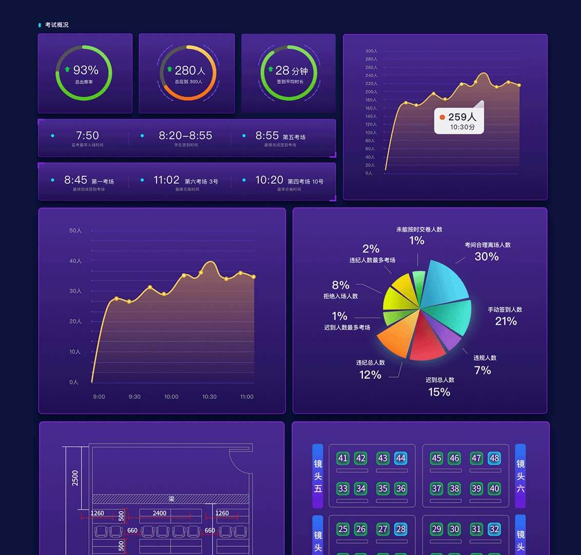 所有標記畫面和全過程同步推流至云端,廣泛適 用于各大考試和無人教室。解決人工管理的不穩 定性,實現考務設備和考場服務的一體化。